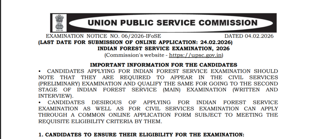- Prelims Notice: upsc.gov.in (IFoS through CSE)[upsc.gov]